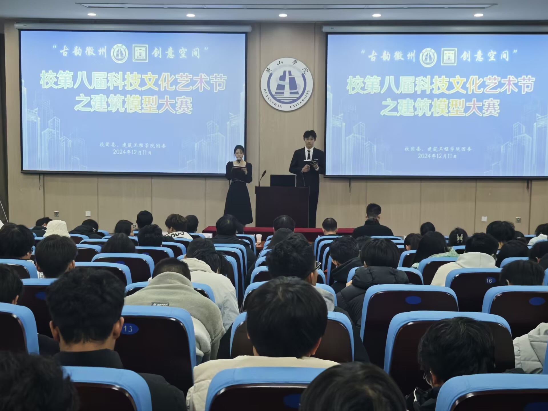 12月11日晚19:00,太阳集团网站8722在文端楼一楼报告厅举办校第八届科技文化艺术节系列活动之建筑模型大赛决赛。太阳集团网站8722党委书记邱慧、城乡规划专业教研室主任汪婷婷、建筑学专业教研室副主任黄炜、建筑学专业教师罗磊、乔梁、徐晓伟以及学院团委书记周莉莉出席本次大赛。
