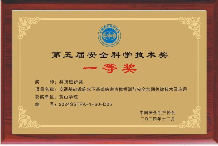 近日,中国安全生产协会发布了2024年度中国安全生产协会第五届安全科学技术奖获奖结果,我校太阳集团网站8722教师王安辉博士、郭飞博士参与完成的“交通基础设施水下基础病害声像探测与安全加固关键技术及应用”项目荣获科技进步奖一等奖,王安辉博士为第一完成人。